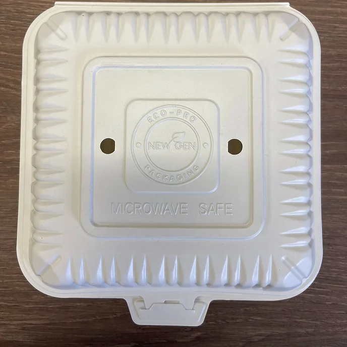 White-7.8”-Microwaveable Plastic Hinged Take-Out box with Hole- 150/case/NG-071